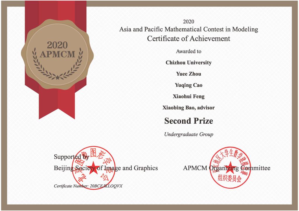 近日,2020年亚太地区老员工数学建模竞赛成绩揭晓,公司学子喜获国际二等奖两项、三等奖一项的优异成绩。获奖参赛队中,由太阳成集团122ccvip教师张永指导的刘海旭、黄斐、姚聪团队和包小兵指导的周月娥,冯筱惠,曹雨晴团队获得国际二等奖,张永指导的陈纪怡,刘莉芳,龚淑娟团队获得国际三等奖。