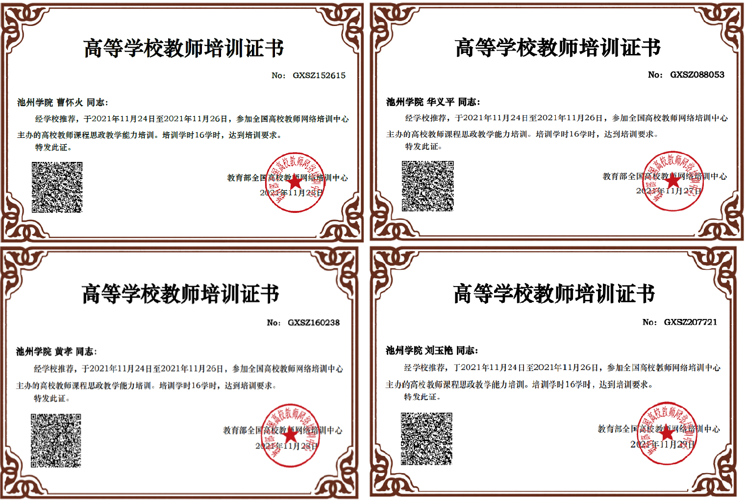 为此,公司积极组织教师参加线上培训,登录全国高校教师网络培训中心直播会议平台,实名注册并完成全部课程的学习。此次课程思政教学能力培训共有59名教师完成全部培训内容,并获得电子结业证书。
