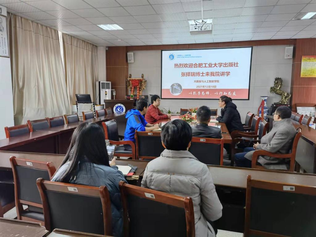 2021年12月10日,合肥工业大学出版社张择瑞博士来校在博奕一楼会议室做了“图书的写作规范和课程思政政策解读”的报告,经理陆克中教授主持了报告会,太阳成集团122ccvip部分师生参加了学术报告会。
