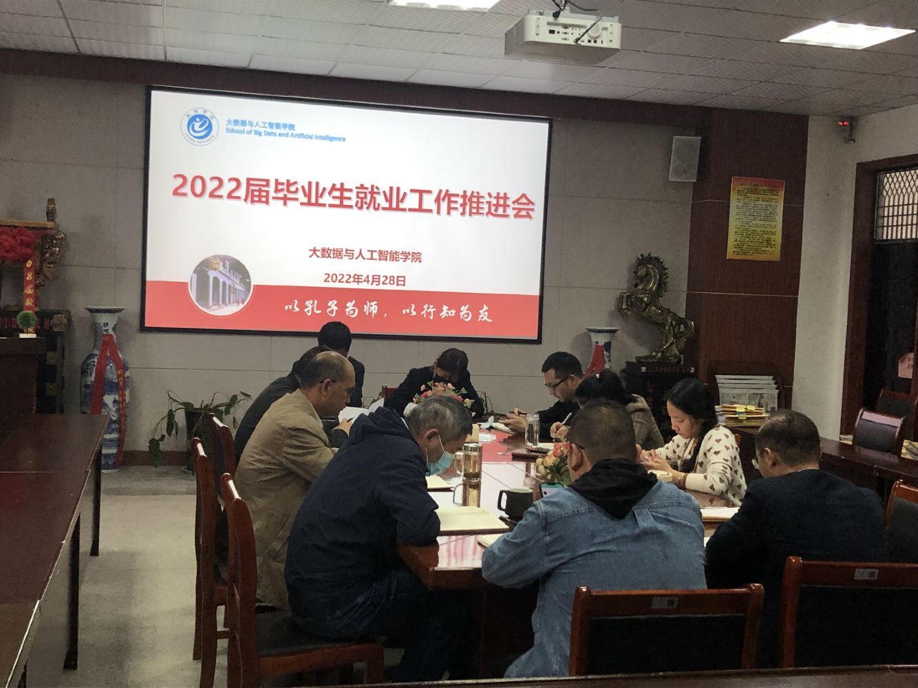 4月28日下午,公司在博奕南一楼会议室召开2022届毕业生就业工作推进会。公司党政领导班子、全体毕业班辅导员和企业部分老师代表参加会议,会议由党委副书记詹春智主持。