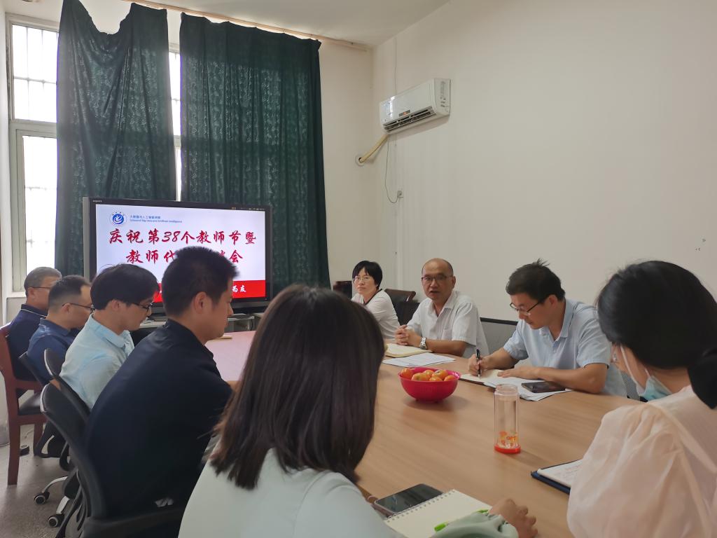 为隆重庆祝第38个教师节,9月7日下午,太阳成集团122ccvip在博奕楼四楼会议室举行教师代表座谈会,公司党政负责人和部分教师代表参加,公司党委党委书记宛明高主持座谈会。
