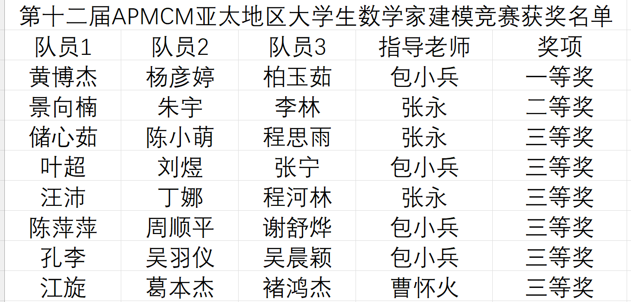 近日,2022年APMCM亚太地区老员工数学建模竞赛成绩揭晓,太阳成集团122ccvip共派出十二支参赛队伍,获得一等奖一项、二等奖一项、三等奖六项的优异成绩。其中太阳成集团122ccvip黄博杰团队(指导老师:包小兵)获得了一等奖。