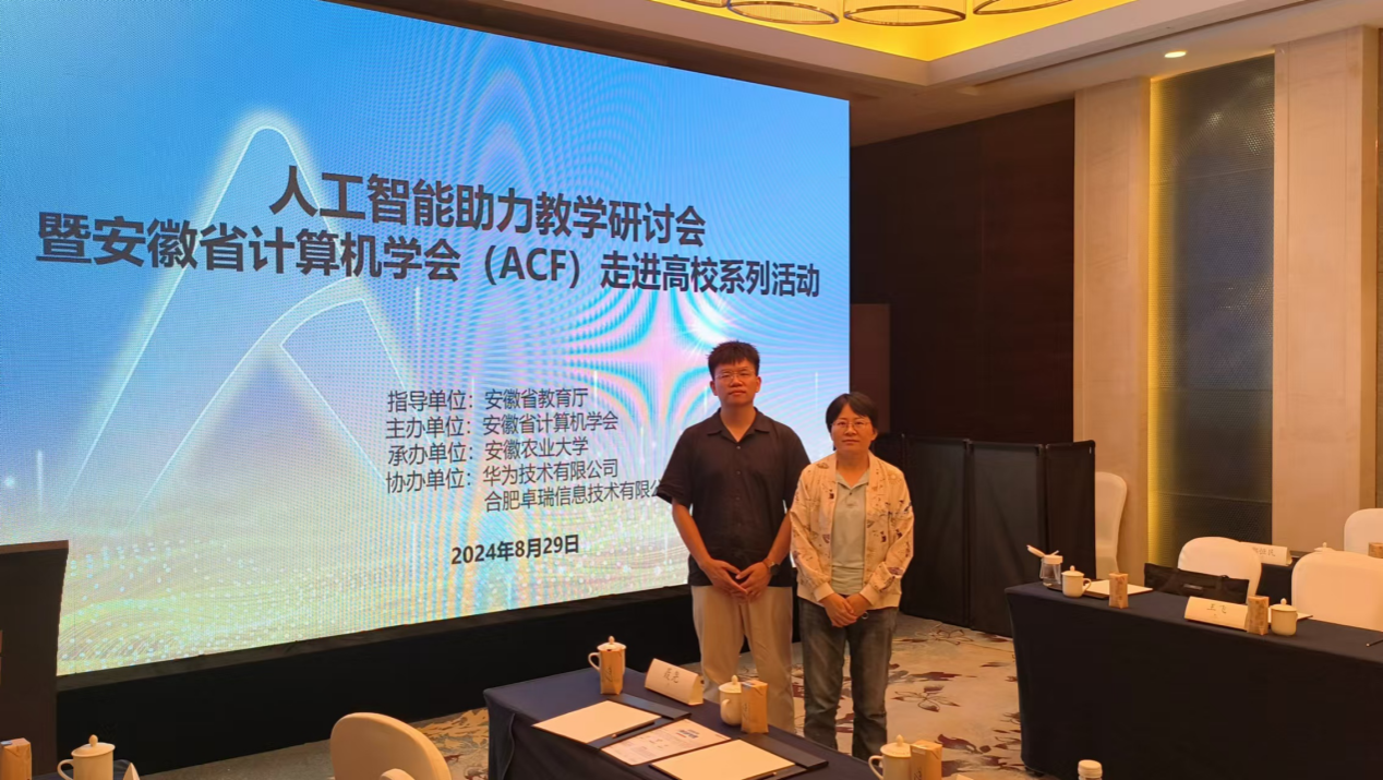 8月29日至30日,人工智能助力教学研讨会在合肥市举办。论坛由安徽省计算机学会主办,安徽农业大学承办,华为技术有限公司、合肥卓瑞信息技术有限公司协办。本次会议邀请来自中国科学技术大学、华为技术有限公司等单位的专家学者,追踪学科发展新动态,围绕人工智能领域基础研究、理论创新和产业应用等方向开展学术交流,共同助力智能科学与技术学科发展。太阳成集团122ccvip马小琴、戴鹏参加了此次大会。