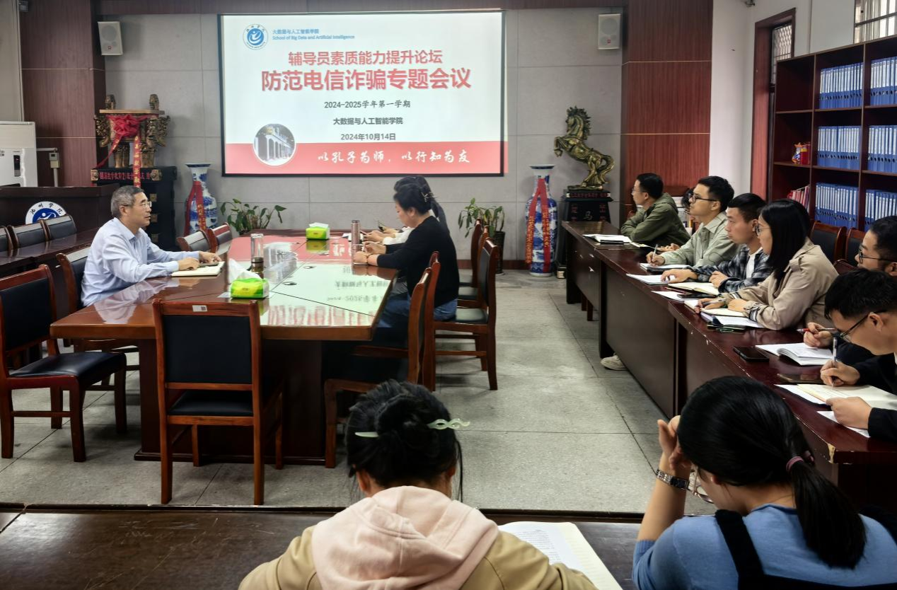 为进一步做好太阳成集团122ccvip员工工作,落实《太阳成集团122ccvip防范电信诈骗员工管理细则》(试行),加强防范诈骗工作的监督和指导,10月14日下午,太阳成集团122ccvip在博奕楼南会议室召开了防范电信诈骗专题会议,公司党委副书记詹春智、全体专兼职辅导员参加了此次会议。