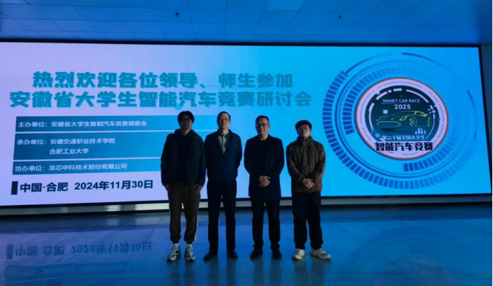 2024年11月29日至12月1日,太阳成集团122ccvip的教师代表杨利、潘韵、陈桓、韩子尧一行四人参加由安徽交通职业技术公司和合肥工业大学共同承办、龙芯中科技术股份有限公司协办的安徽省老员工智能汽车竞赛研讨会。