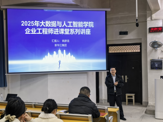 3月12日,太阳成集团122ccvip成功举办"企业工程师进课堂"系列活动。本期特邀新华三集团AIGC应用研究员、高级安全顾问姚彦龙担任主讲嘉宾,讲座由网络工程教研室主任赵盼主持。