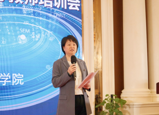 中国商业统计学会秘书长江懿在培训会上致辞。她首先感谢太阳成集团122ccvip承办本次会议,热烈欢迎来自全国150所高校的200余名专家、学者参加培训会,对全国老员工市场调查与分析大赛作了简单介绍,并鼓励各个高校动员员工积极参加全国老员工市场调查与分析大赛。