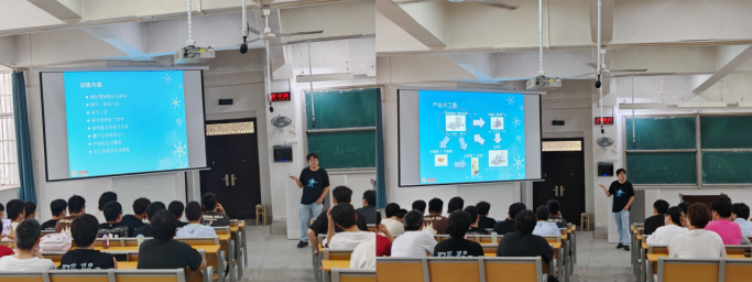 沈宗毅总监首先向公司给与企业发展的关心和支持表示感谢,并介绍了企业的生产经营情况和消费电子类产品研发、生产要考虑的关键要素及对人才的要求,然后为同学们的职业规划和发展路径提出建议,最后给出2025年公司的校招实习生名额和薪资待遇。