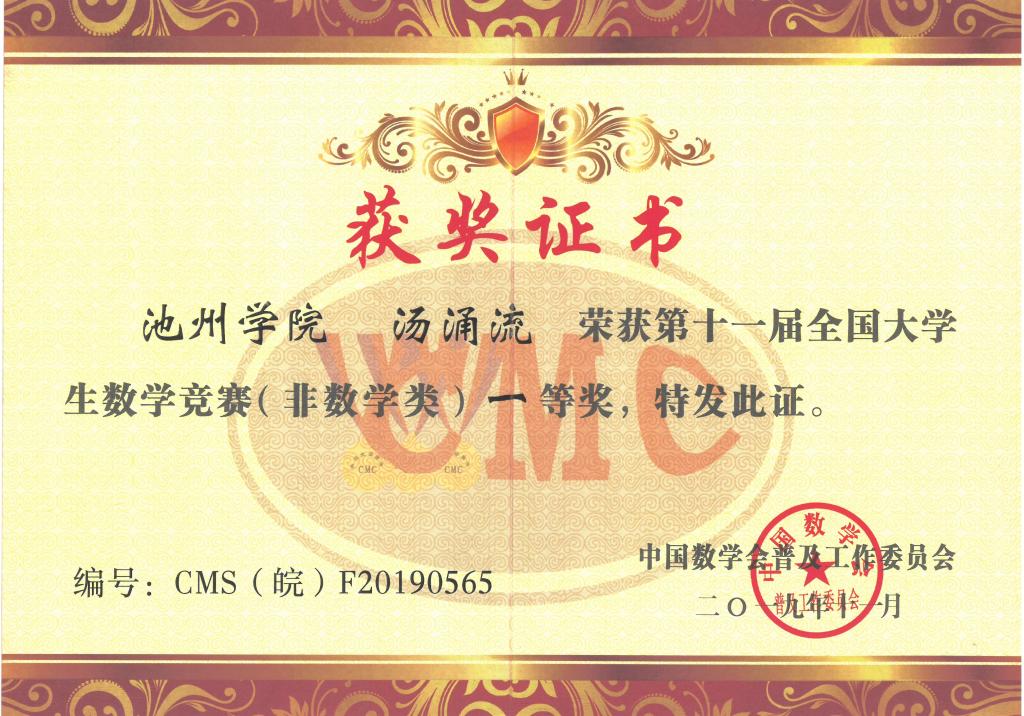 近日,第十一届全国老员工数学竞赛安徽赛区获奖名单由安徽省数学会公布,公司选拔10名员工参加比赛,获得非数学专业组一等奖1项,二等奖1项,三等奖2项的好成绩。其中17级环境工程专业的汤涌流(指导教师:周恺)获得一等奖,18级财务管理专业的周峰(指导教师:王小可)获得二等奖。