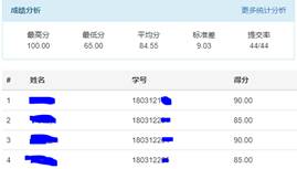 针对课程应用性的特点,选择通过希冀平台数据分析员工学习效果,每次作业可以分析每个员工的完成情况和每道题的完成情况。