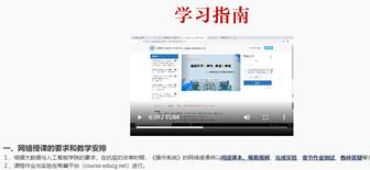 开课前,经过不同网络平台的测试比较,采用混合式线上教学方式进行教学,在中国大学慕课上选择教材配套的操作系统全国精品课程视频,选择希冀平台录入课件、章节作业和实验,录制课程学习指南视频向员工说明线上授课如何开展,教学平台怎么使用。