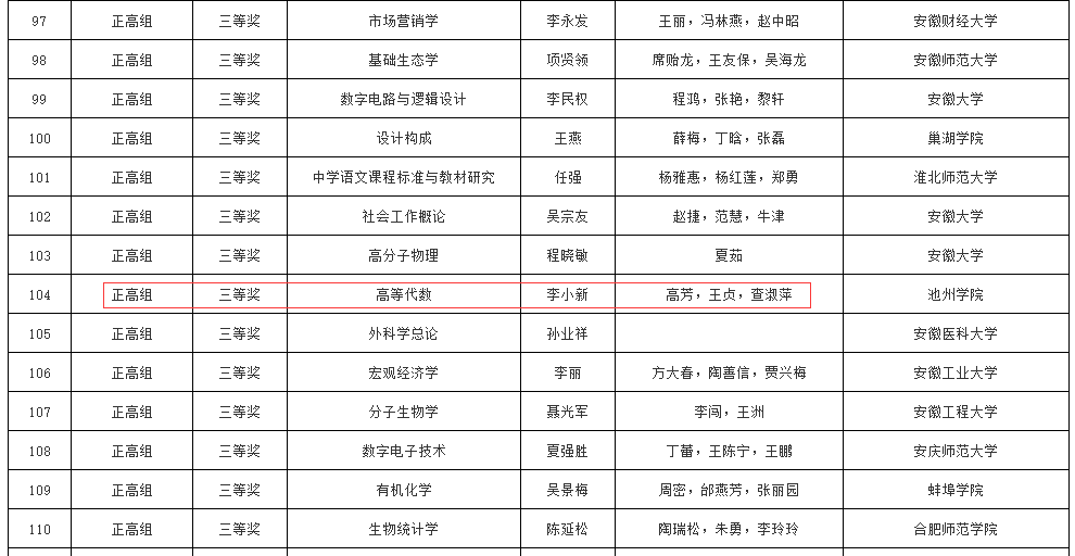 近日,由安徽省教育厅主办、安徽农业大学承办的第二届全国高校教师教学创新大赛(安徽赛区)选拔赛暨安徽省赛圆满收官,公司李小新教师团队(课程:高等代数)获得正高组三等奖。