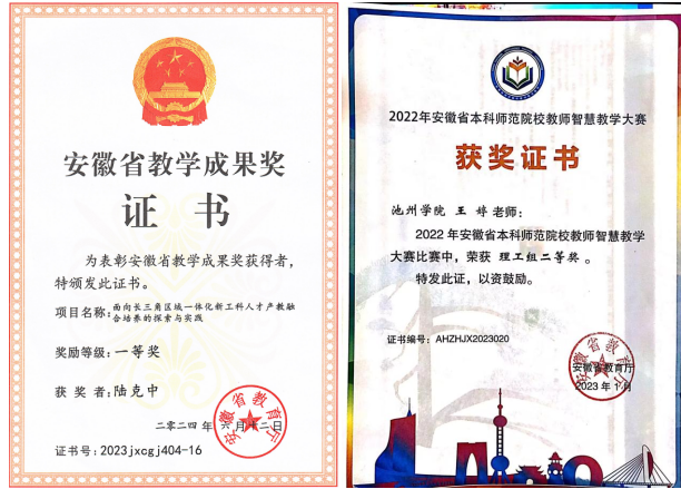 (1)双认证驱动育教学科研双优人才:国家级与省级双认证,教学科研实力突出作为安徽省一流专业建设点,本专业先后获批国家一流本科专业建设点及安徽省特色专业,教学与科研成果显著。近三年,专业教师团队斩获安徽省教学成果奖二等奖,并在各类教学技能竞赛中获奖10余项,充分体现教学创新能力。