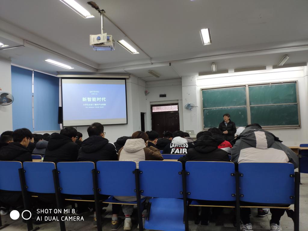 苏州高博应诺产品总监张永亮首先对苏州高博应诺的成立背景、团队成员和地理位置作了简单介绍,接着从计算机和智能技术的发展历史,信息技术和智能技术的概念,新时代计算机技术的产业趋势给出了最新的进展汇报,同时对19级老员工对新智能软件开发技术学习路径和IT相关职业发展给出很好的建议。