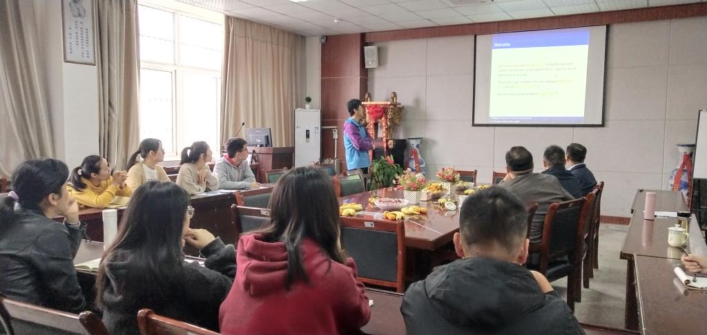 研讨会中许克祥教授做了题为“On the general position number of graphs”的学术报告。图的一般位置数gp-数问题源于经典的三点不共线问题,许教授介绍了gp-数的最新结果,包括gp-数的上下界、图操作下gp-数与原图gp-数的关系、待研究公开问题等。汪毅教授做了题为“On graphs whose orientations are determined by their Hermitian spectra”的学术报告。图的定向问题和图的流及染色问题息息相关,汪教授介绍了一类定向由Hermitian谱确定的图(ODHS图)的最新研究成果,包括刻画ODHS图的一般方法、双圈图是ODHS图的充要条件、一类k-圈ODHS图的构造等。报告结束后,两位教授一一解答了师生们提出的相关问题,并与师生们进行了热烈的讨论与交流。汪毅教授还就同学们关心的考研问题做了解答,介绍了图论的起源与发展、安徽大学图论数学与组合优化学术团队相关情况,并欢迎同学们报考安徽大学进行深造学习。