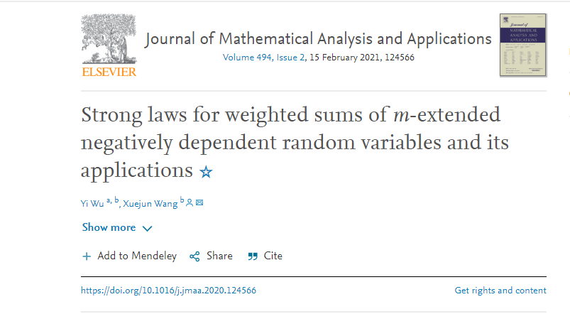 论文主要研究了m-END随机变量序列加权和完全收敛性以及加权Kolmogorov强大数律的充分必要条件。作为应用,在较弱的条件下证明了误差为相依变量的多元线性模型中最小二乘估计的弱相合性与强相合性,得到了m-END样本下CVaR估计的强相合性以及给出了m-END随机序列下拟更新计数过程的渐近性质。吴燚博士作为新教师,入职半年以来继续从事相依变量的概率极限理论及其在统计模型的研究,已完成论文三篇。