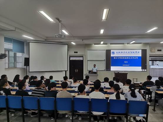 张永首先介绍了一阶常微分方程的欧拉法、改进的欧拉方法、龙格-库塔方法、算法的误差估计和收敛性,然后向师生展示了微分方程的数值方法在数学建模和一类微分积分方程中求解中的应用。