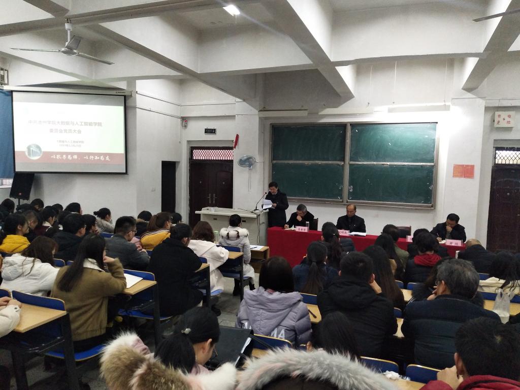 12月25日下午,大数据与人工智能公司党委换届大会在博弈南一楼大教室胜利召开。公司党政领导班子、全体教师党员和员工党员参加。会议由公司党委书记宛明高同志主持。