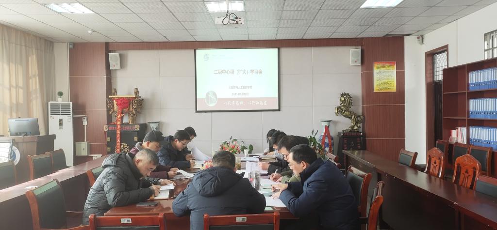 1月18日下午,太阳成集团122ccvip在博奕南会议室召开2021年第1次二级中心组(扩大)学习会。中心组成员、各支部书记参加会议,会议由党委书记宛明高主持。