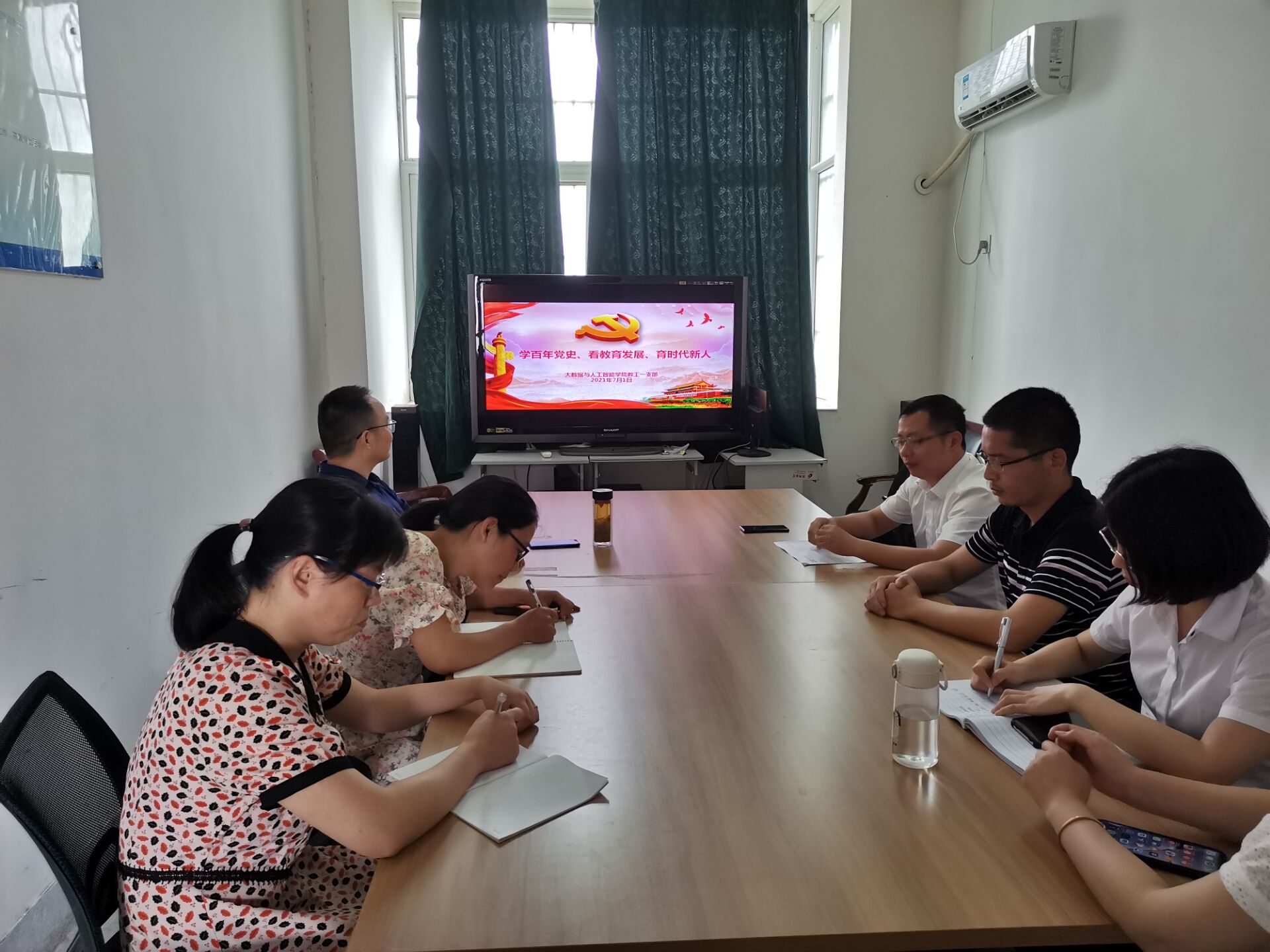 7月1日上午,太阳成集团122ccvip教工一支部在博奕南四楼会议室开展了支部书记讲党课活动。支部书记周恺以“学百年党史、看教育发展、育时代新人”为题,围绕百年党史主要精神谱系、中国高等教育100年发展简史和对普通党员的教育启示三个方面展开论述,支部党员教师一起进行了学习交流。
