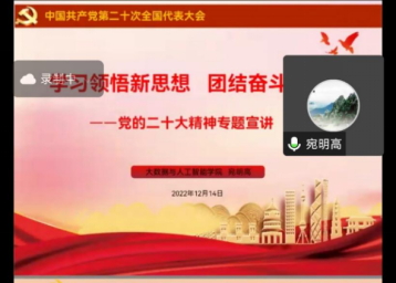 会上,宛明高以“学习领悟新思想 团结奋斗新征程“为题,围绕“深刻领会党的二十大召开的重大意义、准确把握党的二十大报告的精神实质、迅速掀起党的二十大精神学习热潮、全面落实党的二十大精神奋进新征程”四个方面进行了专题宣讲。与会同志联系实际交流了党的二十大精神学习心得体会。