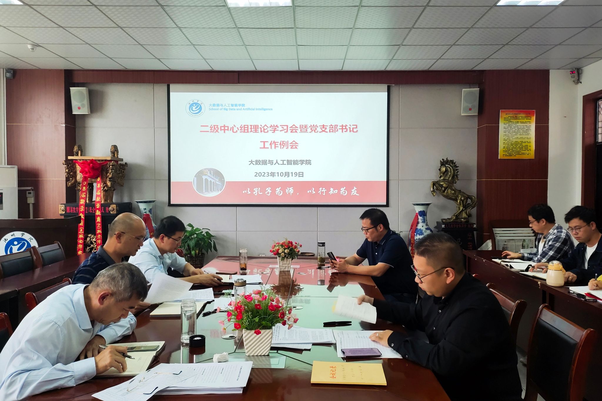 10月19日,太阳成集团122ccvip在博奕南一楼会议室召开二级中心组理论学习会暨党支部书记工作例会,党政领导、二级中心组成员参加会议,公司党委书记宛明高主持会议。