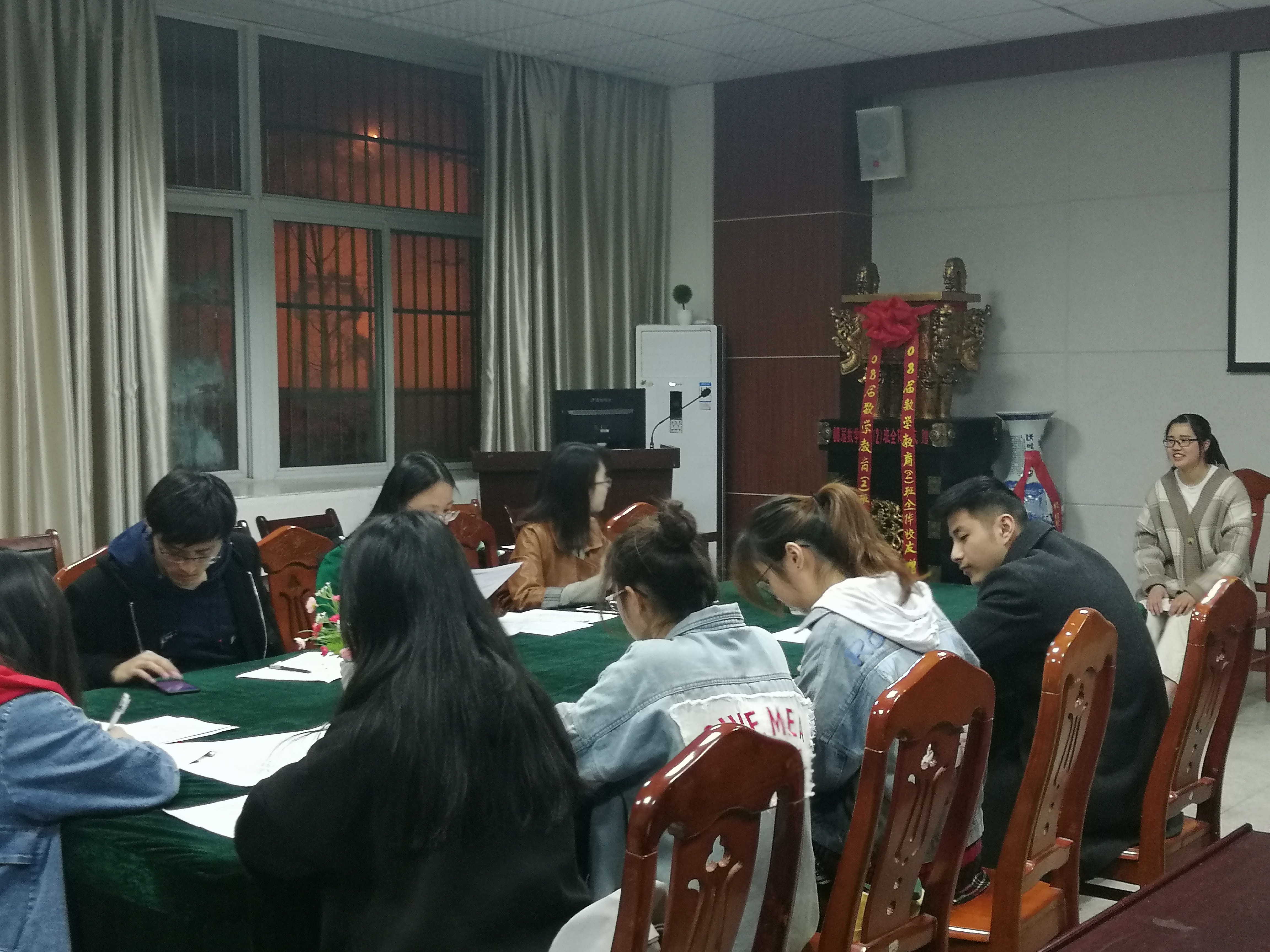 3月31日晚,公司于博奕南一楼会议室进行了“青文记者团”招新二轮面试。来自18级各班的13名笔试成绩较优异的同学参加面试,团总支宣传部全体成员参与考核。