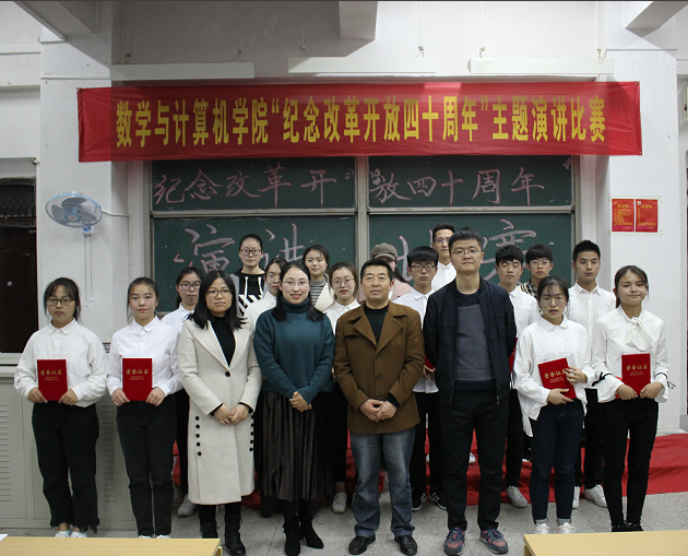 本次演讲比赛经过两轮选拔,共有11名选手进入决赛。决赛中,选手们用生动的事例、客观的数字、自身的体验和感悟来诠释改革开放四十年创造的“中国速度”和“中国奇迹”;《辉煌四十年,共筑中国梦》、《忆改革开放,道华夏腾飞》、《四十年征程,展中华雄风》等一篇篇精彩的演讲,也让人仿佛置身于改革开放的洪流中,感受改革开放带来的沧桑巨变。选手们激情澎湃的演说,真情实感的演绎博得台下观众的阵阵掌声,18计算机1班童辉同学最终获得本次比赛一等奖。最后,何贵林代表评委对本次比赛作了精彩点评。