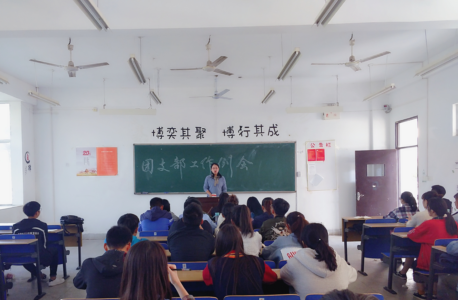 10月29日下午,公司于博奕北101召开“团支部工作例会”,此次会议由院团总支副书记鲍青老师主持,18级新生团支部委员,办公室、组织部、宣传部成员悉数参加会议。