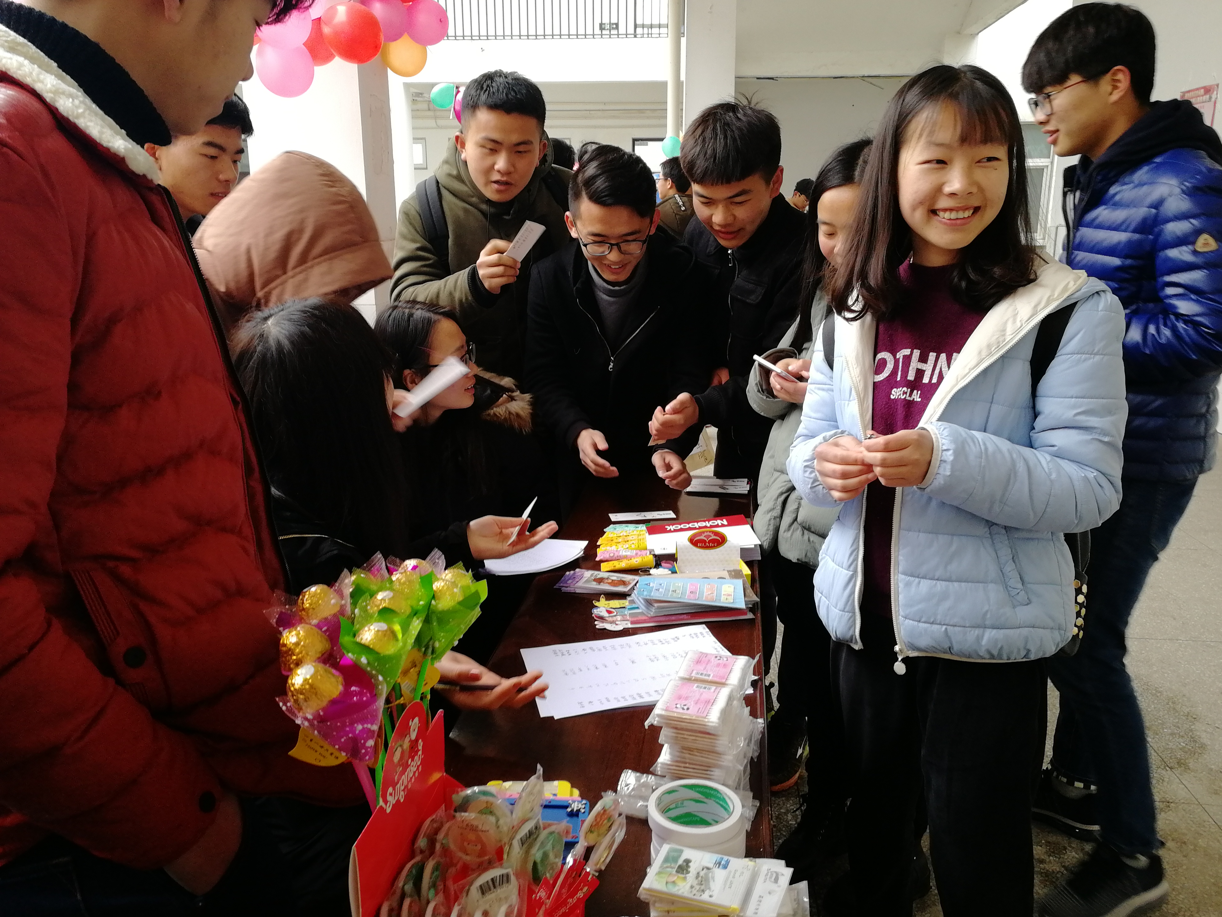 200多条涉及文字、成语、动物、日常用品、水果等的灯谜与五彩气球将博弈楼四周进行了装点,有趣而通俗的谜面吸引广大师生驻足参与,猜对谜题可领取精美礼品,活动现场洋溢着欢乐、喜庆的节日气氛。