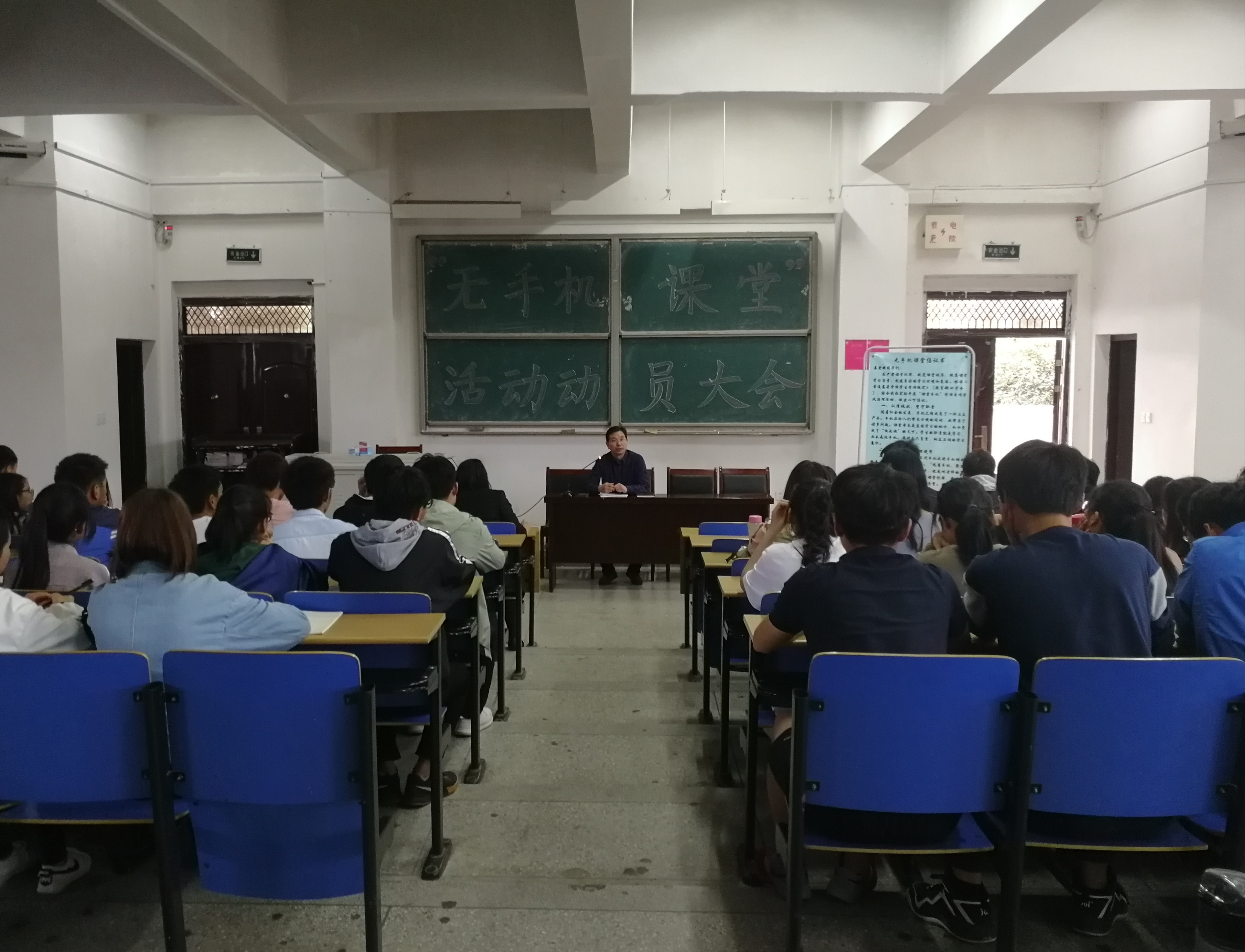 为严肃课堂纪律,加强学风建设,4月18日下午5点,数学与计算机公司于博奕一楼大教室举行“无手机课堂”动员大会。公司党总支副书记朱勇、院团总支负责老师鲍青及员工代表参加了动员会。