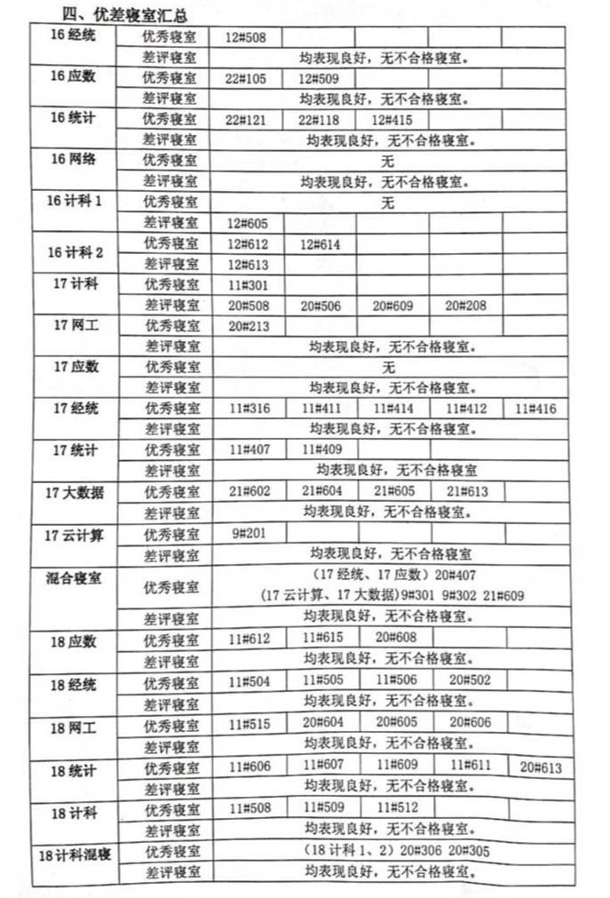 四、优差寝室汇总