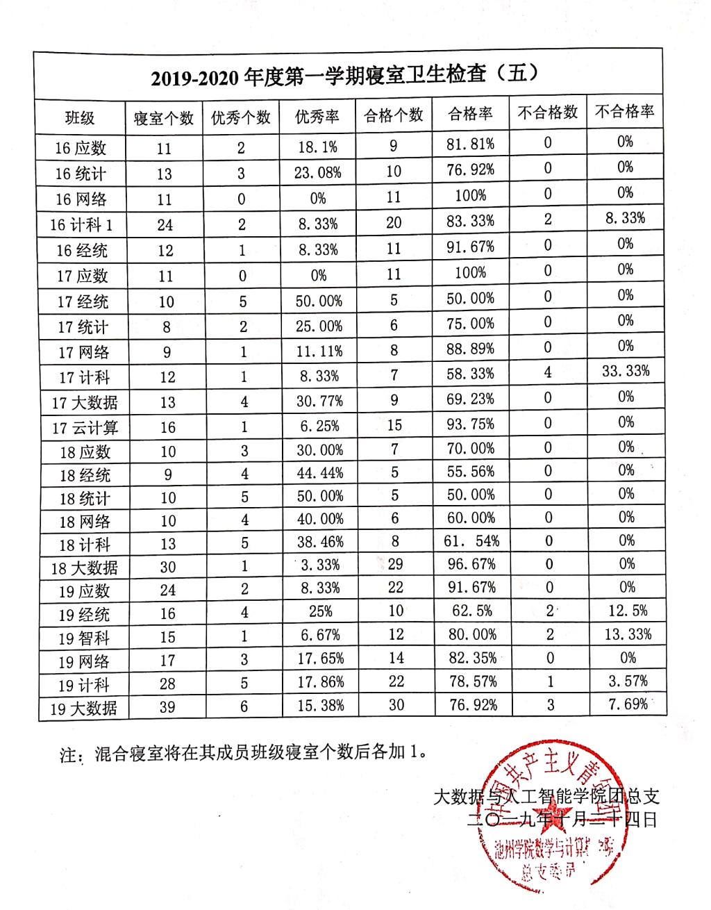 2019-2020年度第一学期寝室卫生检查(五)
