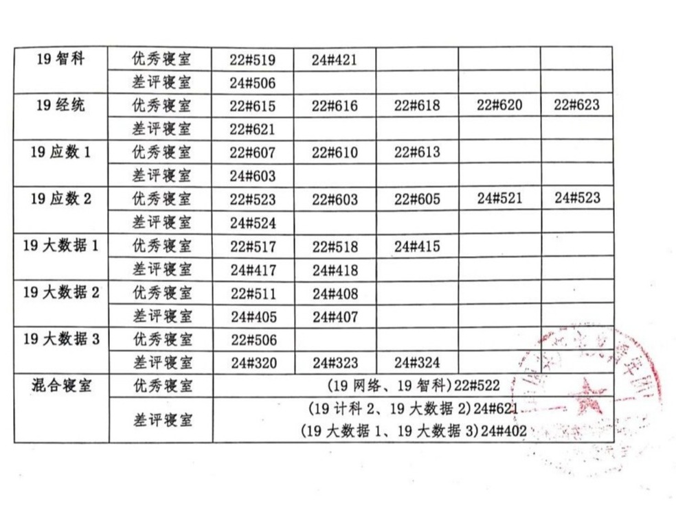 本次卫生检查19级问题寝室较多。请19级辅导员通知负责人加强寝室卫生安全的管理。