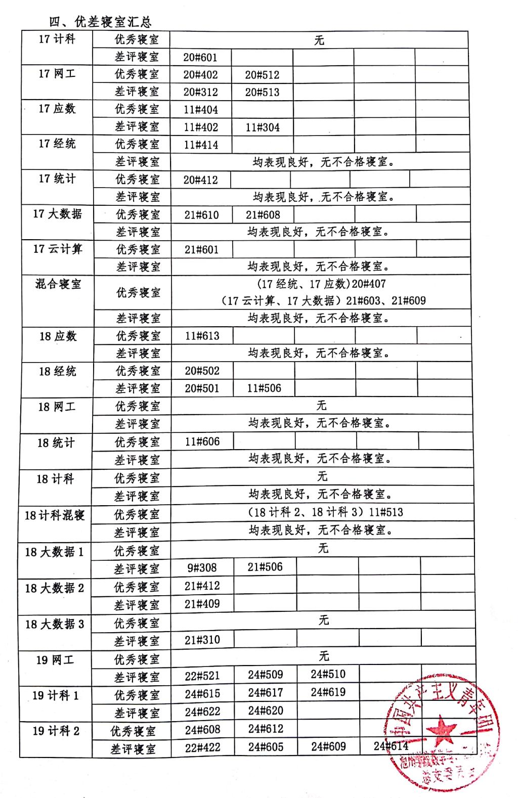 注释:优秀前五排行榜根据每次优秀率最高的5名依次排出,差评寝室前五排行榜根据每次不合格率最高的5名依次排出。