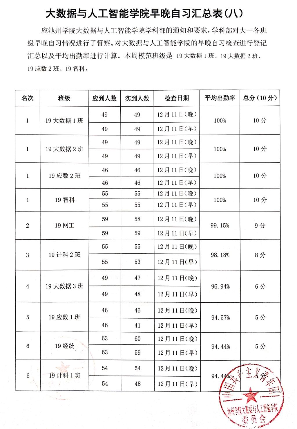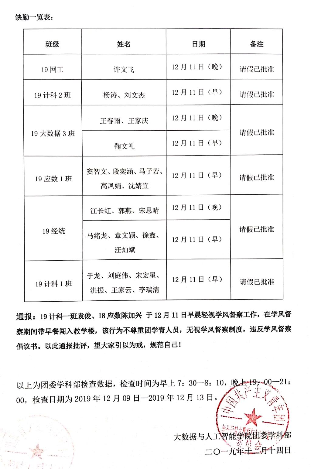 应太阳成集团122ccvip学科部的通知和要求,学科部对大一各班级早晚自习情况进行了督察。对太阳成集团122ccvip的早晚自习检查进行登记汇总以及平均出勤率进行计算。本周模范班级是 19大数据1班、19大数据2班、19应数2班、19智科。