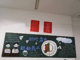 活动前期,各班级为响应“光盘”号召,召开主题班会,手绘黑板报,让员工充分认识到“光盘”的重要性。活动后期在一食堂门口进行签名仪式,旨在呼吁广老员工认真践行光盘行动,做到珍惜粮食,人走盘光,拒绝浪费。