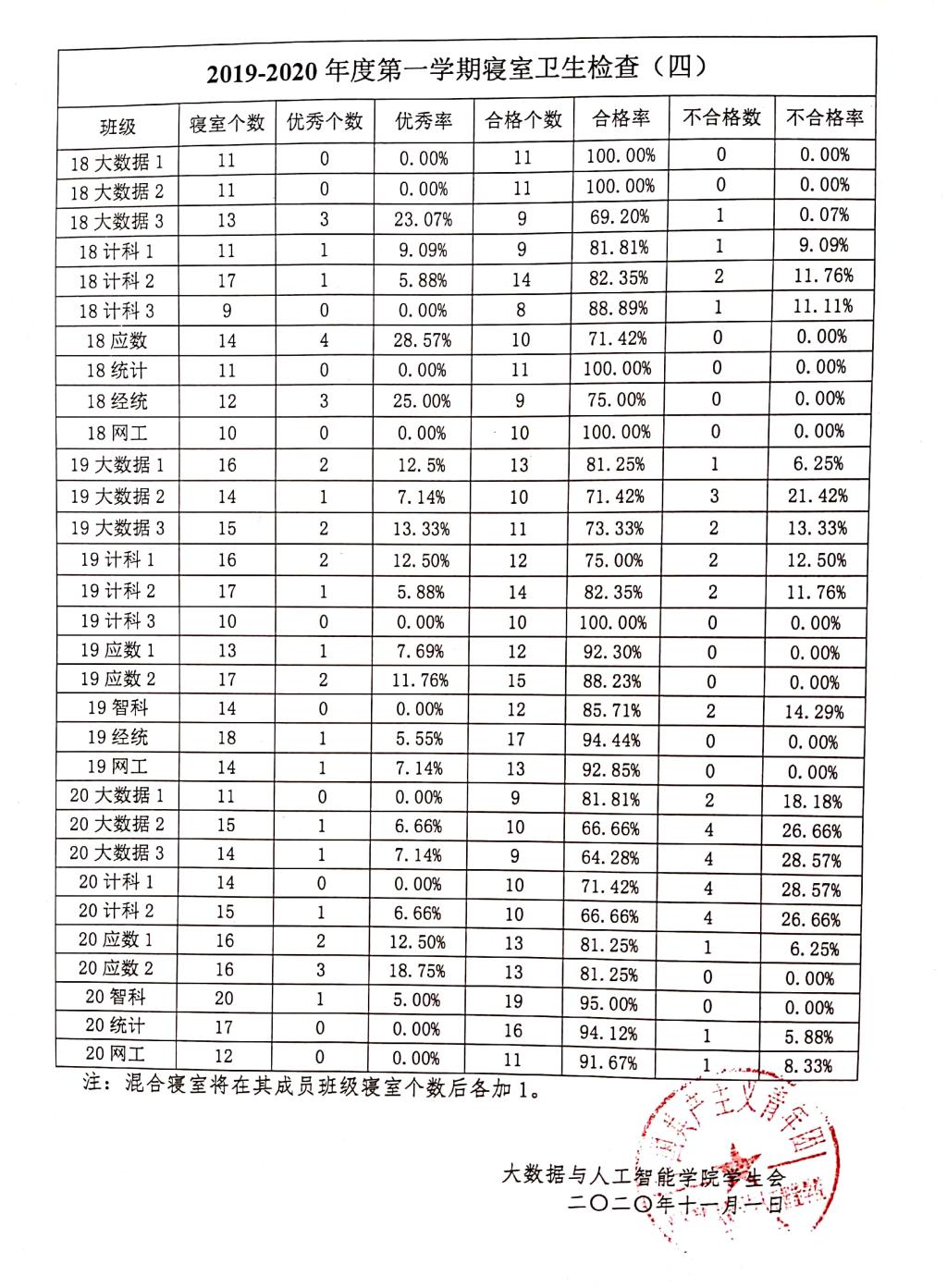 本次卫生检查20级问题寝室较多。请20级辅导员通知负责人加强寝室卫生安全的管理和学风的监督。