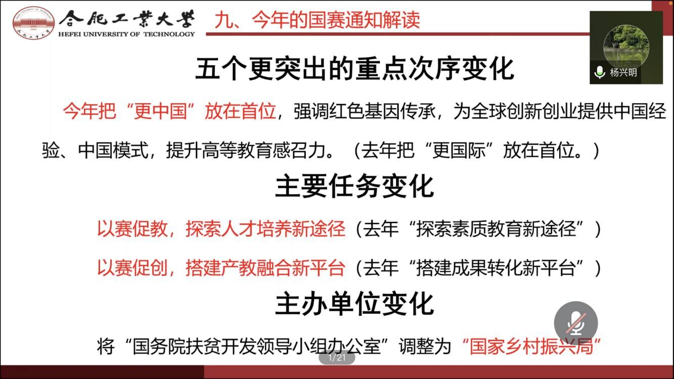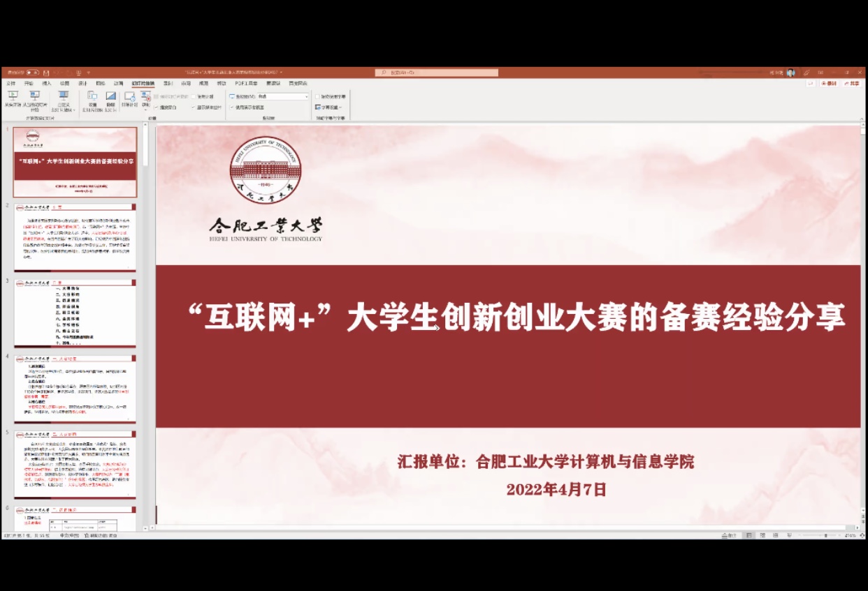 4月7日,合肥工业大学计算机与信息公司双创办主任杨兴明博士应邀于线上为公司作第八届“互联网+”创新创业大赛交流指导。俞文昌主持本次会议,全体参赛指导教师和队员与会。