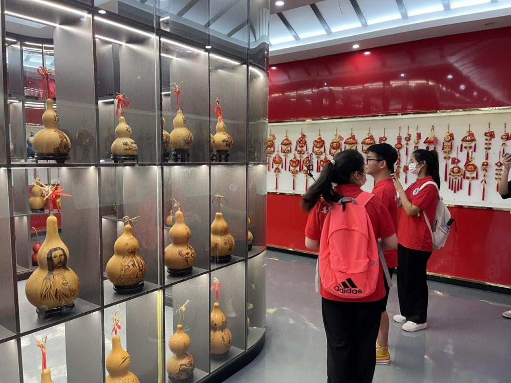 实践团在公司负责人带领下参观了工厂,了解到该企业主要经营葫芦类工艺品,其制作的姜尚烙画葫芦被授予“中国安徽旅游必购商品”,具有较高的观赏和纪念价值,烙画葫芦工艺于2016年被列为“安徽省非物质文化遗产项目”。队员们参观结束后学习了工匠雕刻技艺,感受烙画葫芦是集淳朴自然与高雅精美为一体的民间艺术。结合自身学习专业建议企业利用好互联网平台,拓宽直播等渠道,让更多人了解烙画葫芦工艺,感受中国人民的智慧与勤奋。