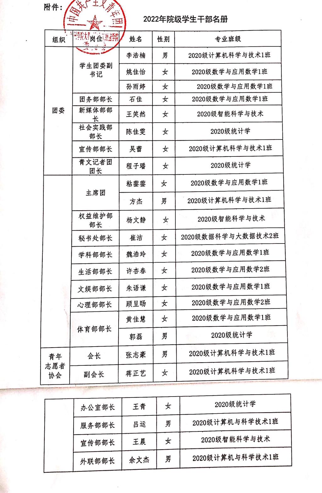 为进一步加强公司团学干部队伍建设,提升团学组织活力,让一批思想素质高、工作能力强的同学加入到院级团学干部队伍中来,根据《关于公开选拔院级员工干部的通知》要求,经个人自荐、资格审查、面试和综合评定等环节,确定聘任院级员工干部24名。现将员工干部聘任结果予以公布。