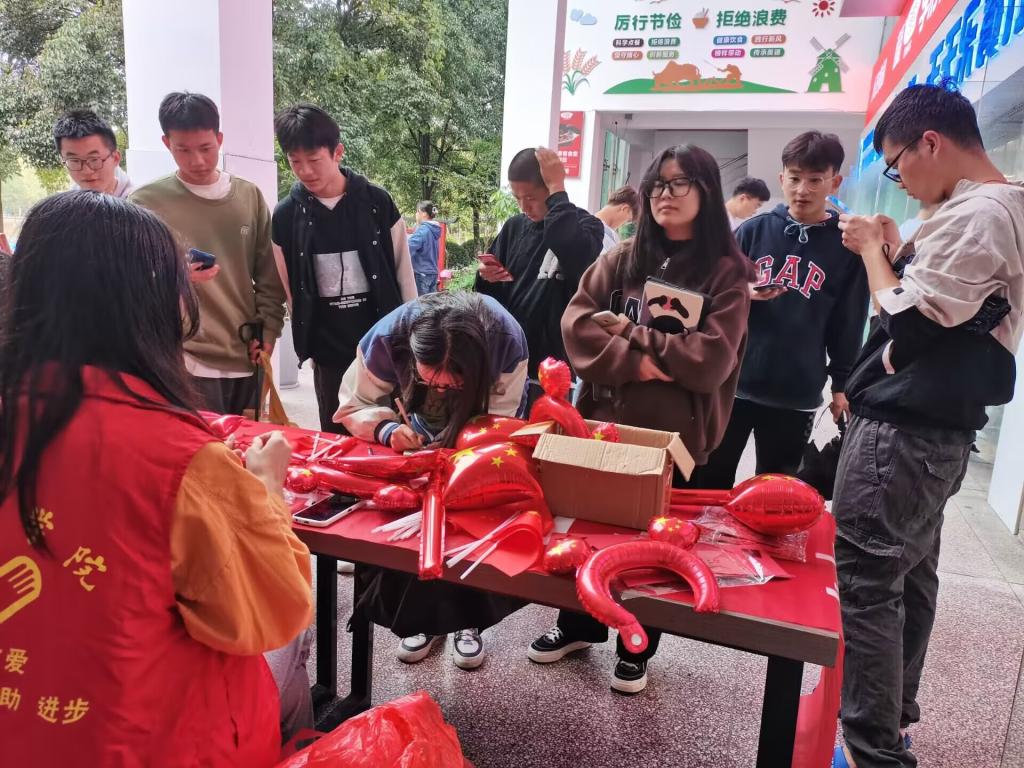 同学们积极参与书写祝福语、个性签名、趣味问答系列活动,表达了对祖国母亲浓浓的爱意与承诺;同学们还精心布置了博奕教学楼,积极营造浓郁的节日氛围。