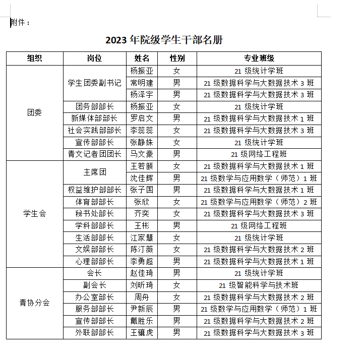 为进一步加强公司团学干部队伍建设,提升团学组织活力,让一批思想素质高、工作能力强的同学加入到院级团学干部队伍中来,根据《关于公开选拔院级员工干部的通知》要求,经个人自荐、资格审查、面试和综合评定等环节,确定聘任院级员工干部23名。现将员工干部聘任结果予以公布。