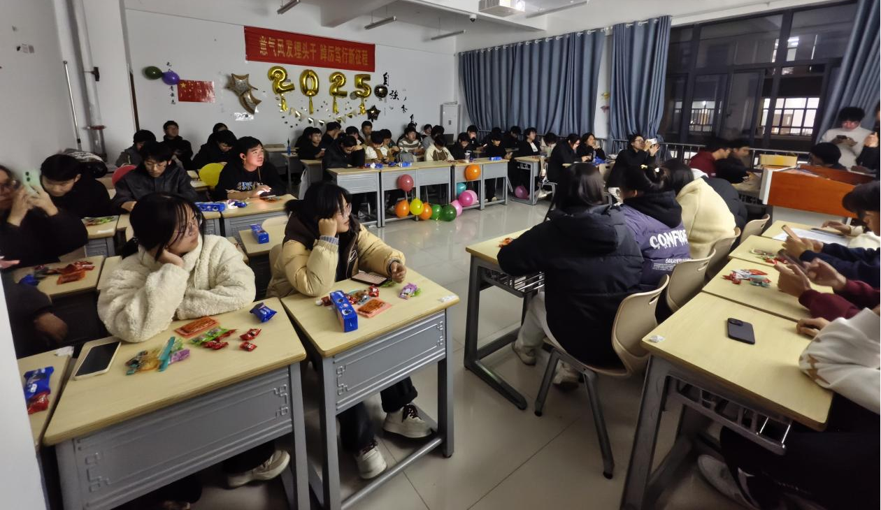 欢声笑语辞旧岁,喜气洋洋迎新年。12月29日晚,在公共教学楼北305教室,24智能科学与技术班精心筹备的元旦晚会在一片热烈的氛围中拉开帷幕,晚会由邵朋和余雨欣主持。同学们共聚一堂,共同迎接新年的到来,现场洋溢着青春的活力与节日的欢乐。