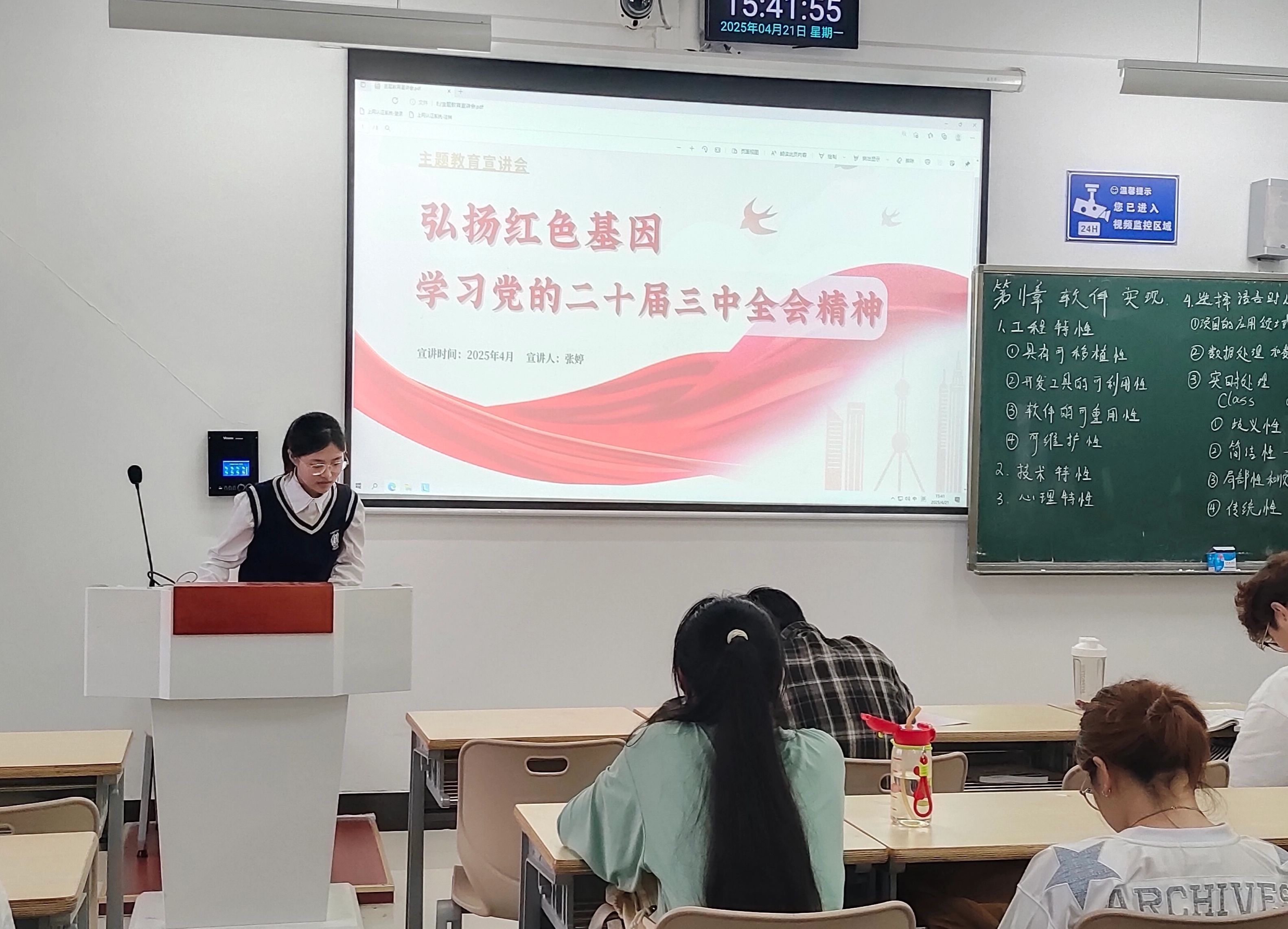 为深入学习贯彻党的二十届三中全会精神,引领青年学子深刻把握新时代全面深化改革的核心要义,2025年4月21日,太阳成集团122ccvip员工宣讲团在全院范围内,开展了“弘扬红色基因”主题宣讲活动。通过学习领悟党的二十届三中全会精神,提高青年员工自身思想觉悟,推动党的创新理论在青年群体中落地生根。