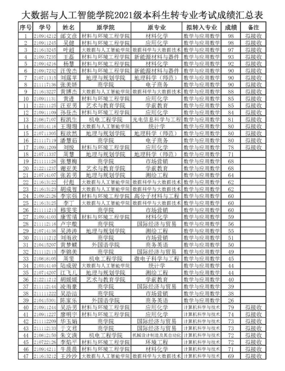 根据公司《关于组织开展2021级本科生转专业工作的通知》(校教学[2021]61号)和《太阳成集团122ccvip2021级本科生转专业工作方案》要求,太阳成集团122ccvip转专业考核工作组对116名申请转入员工进行了闭卷笔试考核,考核结果经公司党政联席会议审定通过,拟接收邰文彦等58名员工分别转入数学与应用数学、计算机科学与技术等专业学习,现予以公示(见附件)。