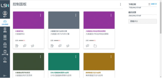 LSN线上教学平台围绕大数据专业核心课程部署线上课程资源,系统地整合了专业课程的教学大纲、单元测试习题、课后作业等多种项目,构建满足员工在线学习和实验的平台。线上学习内容涵盖开发的LSN线上课堂级实验资源、工程师课程录课、在线学习行为分析、在线学习视频等,整个教学过程与线下教学相比,没有环节缺失。